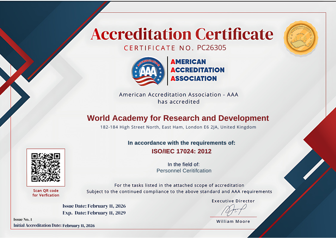 We believe that trust is the foundation of professional development. That is why the World Academy for Research and Development has pursued and achieved accreditation from the American Accreditation Association (AAA) .